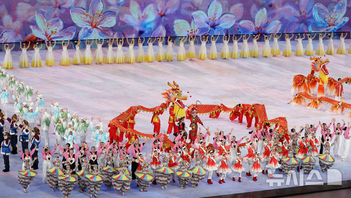 [하얼빈(중국)=뉴시스] 김선웅 기자 = 7일(현지 시간) 중국 하얼빈 국제 컨벤션 전시 스포츠센터에서 2025 하얼빈 동계 아시안게임 개막식 식전 공연이 펼쳐지고 있다. 2025.02.07. [email protected]