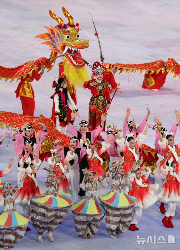 [하얼빈(중국)=뉴시스] 김선웅 기자 = 7일(현지 시간) 중국 하얼빈 국제 컨벤션 전시 스포츠센터에서 2025 하얼빈 동계 아시안게임 개막식 식전 공연이 펼쳐지고 있다. 2025.02.07. [email protected]