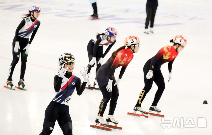 [하얼빈(중국)=뉴시스] 김선웅 기자 = 8일(현지 시간) 중국 하얼빈 헤이룽장 빙상훈련센터에서 열린 2025 하얼빈 동계 아시안게임 쇼트트랙 여자 1500m 결승 경기에서 대한민국 김길리가 금메달을 확정지으며 기뻐하고 있다. 2025.02.08. [email protected]