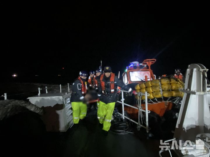 [여수=뉴시스] 이영주 기자 = 오전 1시41분께 여수시 삼산면 하백도 동쪽 약 17㎞ 해상에서 139t급 대형트롤선박 A호(선원 14명 탑승·부산 선적)가 침몰한 것으로 추정, 여수해경이 현장에서 선원들을 구조하고 있다. (사진 = 여수해경 제공) 2025.02.09. [email protected]