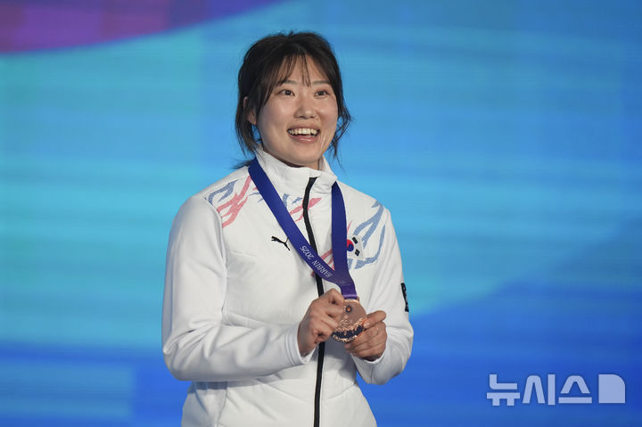 [하얼빈=AP/뉴시스] 장유진이 8일(현지 시간) 중국 헤이룽장성 하얼빈의 야부리 스키리조트에서 열린 2025 동계아시안게임 여자 프리스키 하프파이프 시상식에서 동메달을 목에 걸고 기념 촬영하고 있다. 장유진은 85.00점을 기록해 동메달을 따냈다. 2025.02.09.