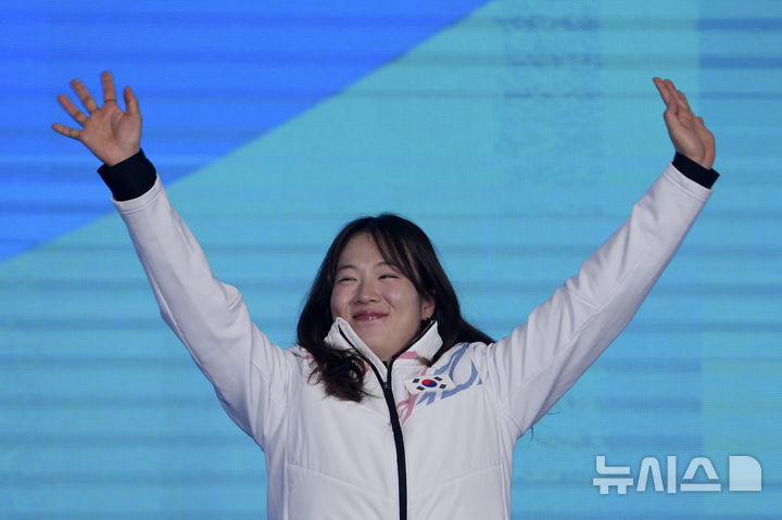 [하얼빈=AP/뉴시스] 김소희가 8일(현지 시간) 중국 헤이룽장성 하얼빈의 야부리 스키리조트에서 열린 2025 동계아시안게임 알파인스키 여자 회전 시상식 시상대에 올라 인사하고 있다. 김소희는 결선에서 1,2차 시기 합계 1분34초06의 기록으로 은메달을 목에 걸었다. 2025.02.09.
