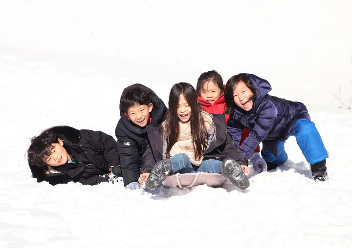 [함양=뉴시스] 9일 경남 함양군 휴천면 오도재에서 어린이들이 눈썰매를 타며 즐거운 시간을 보내고 있다. (사진= 함양군 제공) 2025. 02. 09 [email protected] *재판매 및 DB 금지