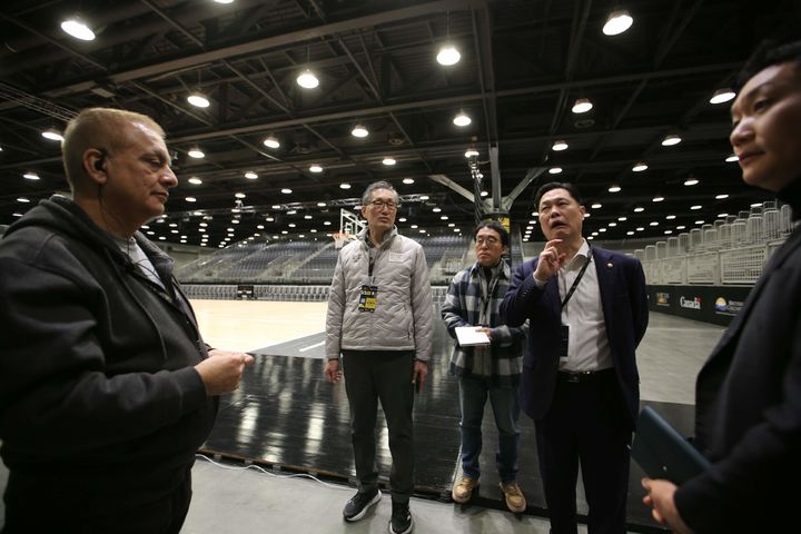 [서울=뉴시스] 세계 상이군인 체육대회인 ‘2029 인빅터스 게임’ 유치 활동을 위해 캐나다를 방문한 이희완 국가보훈부 차관과 대전광역시 유득원 부시장이 8일(현지시간) 2025 캐나다 인빅터스 게임 주경기장인 밴쿠버 컨벤션센터를 시찰하고 있다. (사진=국가보훈부 제공) 2025.02.09. [email protected]