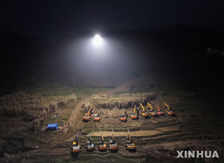 [이빈=신화/뉴시스] 9일(현지 시간) 중국 쓰촨성 이빈시 윈롄현 진핑촌에서 구조대가 산사태 실종자를 수색하고 있다. 현지 당국은 지난 8일 오전 발생한 산사태로 지금까지 1명이 숨지고 28명이 실종됐으며 2명이 부상했다고 밝혔다. 2025.02.10.