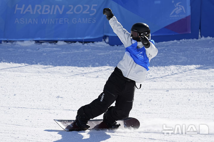 [야부리=AP/뉴시스] 강동훈이 10일(현지 시간) 중국 헤이룽장성 야부리 스키리조트에서 열린 2025 하얼빈 동계아시안게임 남자 스노보드 빅에어 경기를 펼치고 있다. 강동훈은 결선에서 158.75점을 획득해 중국의 양원룽(193.25점), 장신제(160.25점)에 이어 3위에 올라 동메달을 목에 걸었다. 2025.02.10.