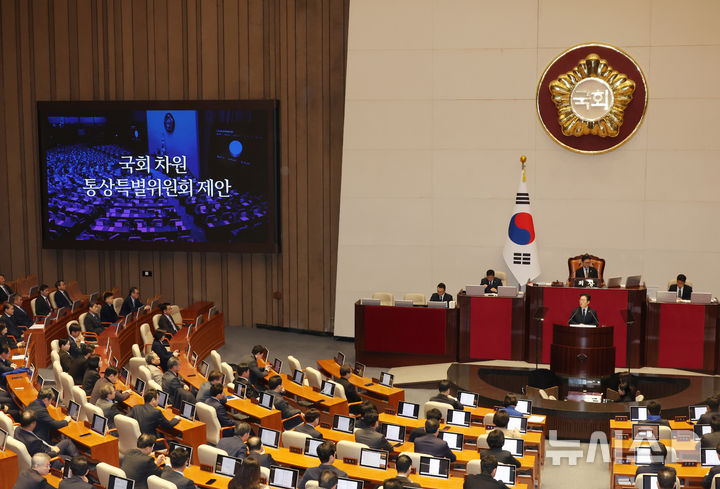 [서울=뉴시스] 고승민 기자 = 이재명 더불어민주당 대표가 10일 서울 여의도 국회에서 열린 본회의에서 교섭단체 대표연설을 하고 있다. 2025.02.10. [email protected]