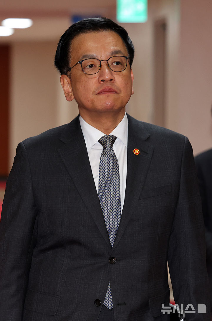 [서울=뉴시스] 최진석 기자 = 최상목 대통령 권한대행 부총리 겸 기획재정부 장관이 11일 서울 종로구 정부서울청사에서 열린 국무회의에 입장하고 있다. 2025.02.11. [email protected]