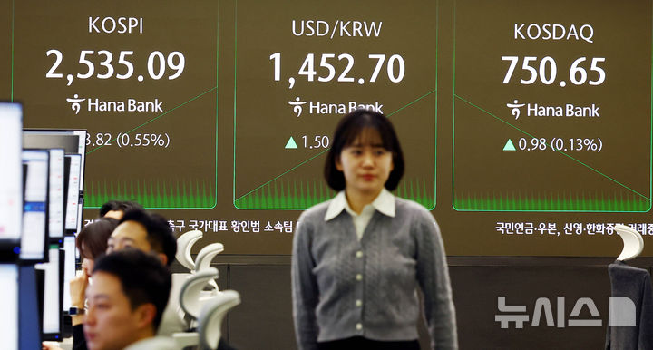 코스피는 전 거래일 대비 0.46%(11.60p) 오른 2532.87에 장을 시작했고 코스닥은 전 거래일 대비 0.21%(1.58p) 상승한 751.25에 개장했다. 서울 외환시장에서 원·달러 환율은 전날 종가보다 1.70원 오른 1452.90원에 거래 되고 있다. 2025.02.11. [email protected]