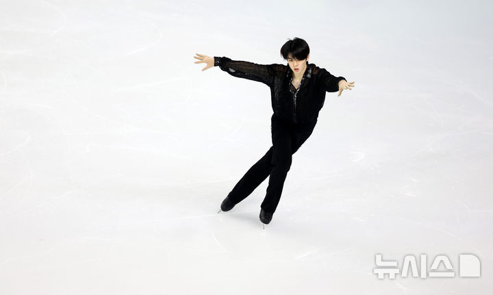 [하얼빈(중국)=뉴시스] 김선웅 기자 = 11일(현지 시간) 중국 하얼빈 헤이룽장 빙상훈련센터에서 열린 2025 하얼빈 동계 아시안게임 피겨스케이팅 남자 싱글에 출전한 차준환이 연기를 선보이고 있다. 2025.02.11. [email protected]