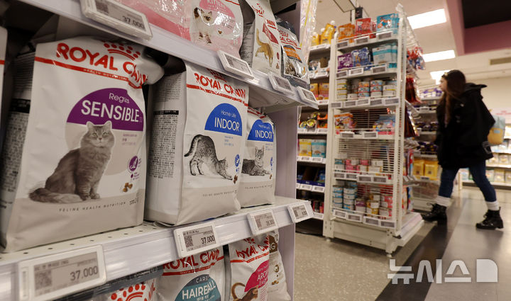 [서울=뉴시스] 추상철 기자 = 12일 오전 서울의 한 대형마트에 펫푸드인 로얄캐닌이 진열돼 있다.
