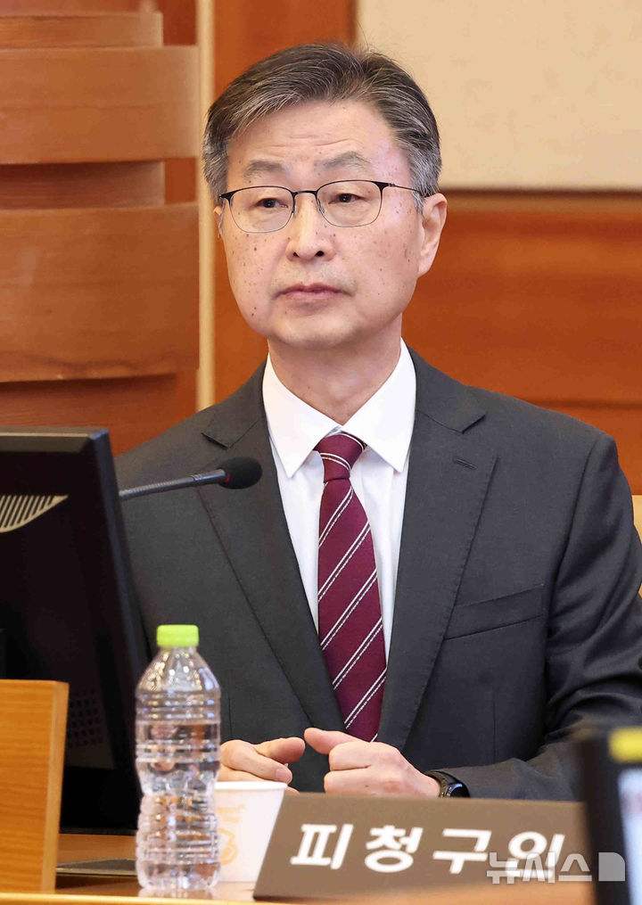 [서울=뉴시스] 김근수 기자 = 최재해 감사원장이 12일 오후 서울 종로구 헌법재판소 대심판정에서 열린 탄핵심판 첫 변론기일에 출석해 자리하고 있다. (공동취재) 2025.02.12. [email protected]