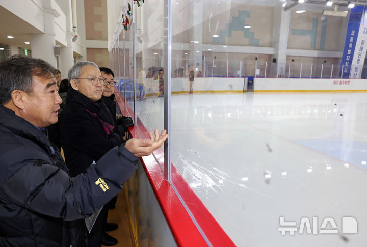 [서울=뉴시스] 정병혁 기자 = 유인촌 문화체육관광부 장관이 12일 세종 반다비 빙상장을 방문해 시설을 살펴보고 있다.(사진=문화체육관광부 제공) 2025.02.12. [email protected] *재판매 및 DB 금지
