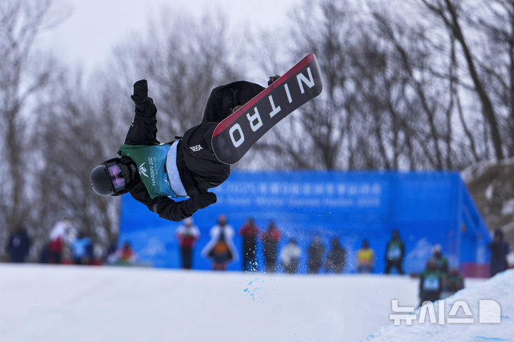 [야부리=AP/뉴시스] 이채운이 13일(현지 시간) 중국 헤이룽장성 야부리 스키리조트에서 2025 하얼빈 동계아시안게임 스노보드 남자 하프파이프 결선을 앞두고 연습하고 있다. 이채운은 이날 강풍으로 결선이 취소되면서 예선 성적(43.75점)으로 순위가 결정돼 최종 6위를 기록했다. 2025.02.13.