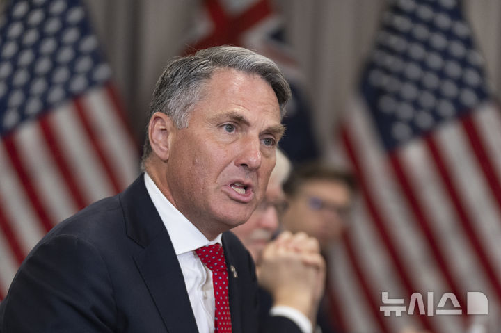 [워싱턴=AP/뉴시스]리처드 말스 호주 부총리 겸 국방장관이 7일 워싱턴 미 국방부에서 피트 헤그세스 국방장관과의 회담 시작 전 기자의 질문에 답하고 있다. 그는 13일 호주는 중국 전투기가 남중국해 상공에서 정찰 비행 중이던 호주군 감시 항공기에 플레어를 발사해 위험에 빠뜨리는, 안전하지 않고 전문적이지 않은 행동에 대해 항의했다고 밝혔다. 2025.02.13.