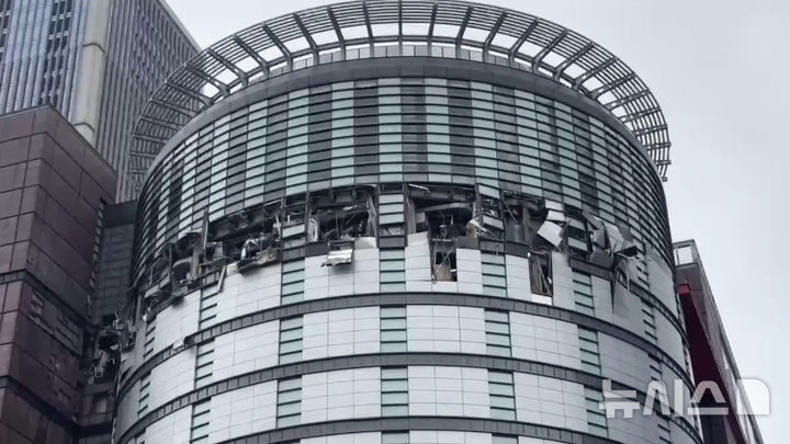 [타이중=AP/뉴시스] 대만 국가소방청이 제공한 사진에 13일(현지 시간) 대만 타이중의 신광 미츠코시 백화점에서 폭발이 일어나 해당 층 창문 등이 파손돼 있다. 현지 당국은 푸드코트 공사 중이던 12층에서 폭발이 일어나 최소 5명이 숨지고 20여 명이 부상했다고 밝혔다. 2025.02.13.