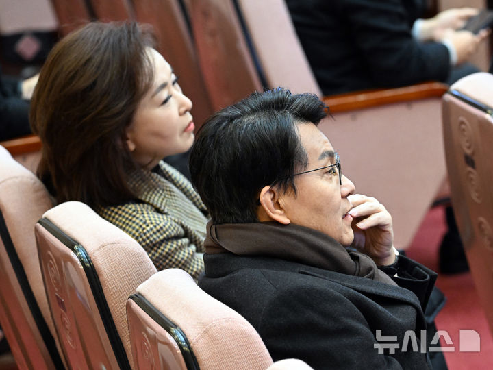[서울=뉴시스] 사진공동취재단 = 국민의힘 윤상현·김민전 의원이 13일 서울 종로구 헌법재판소에서 열린 윤석열 대통령 탄핵심판 8차 변론에 참석해 변론 시작을 기다리고 있다. 2025.02.13. [email protected]
