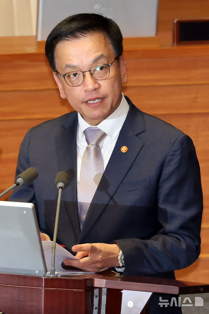[서울=뉴시스] 조성우 기자 = 최상목 대통령 권한대행 부총리 겸 기획재정부 장관이 13일 오후 서울 여의도 국회에서 열린 제422회 국회(임시회) 제5차 본회의 경제 분야 대정부질문에서 고동진 국민의힘 의원 질의에 답변하고 있다. 2025.02.13. [email protected]