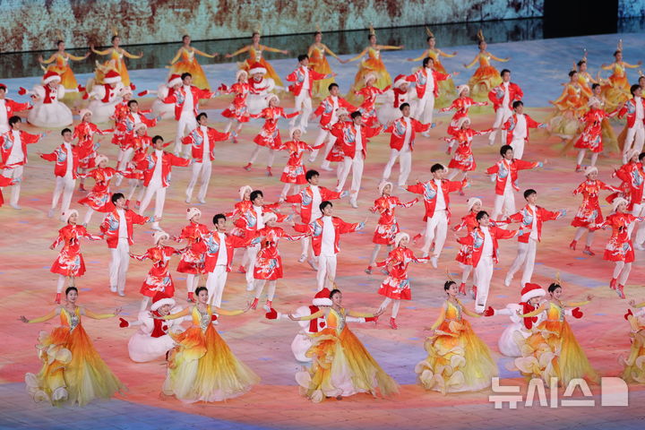 [하얼빈(중국)=뉴시스] 김선웅 기자 = 14일(현지 시간) 중국 하얼빈 국제 컨벤션 전시 스포츠센터에서 열린 2025 하얼빈 동계 아시안게임 폐회식에서 폐막 공연이 펼쳐지고 있다. 2025.02.14. [email protected]