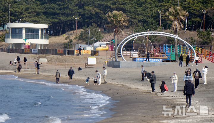 [제주=뉴시스] 오영재 기자 = 13도 안팎에 포근한 날씨를 보인 16일 오후 제주 이호테우해수욕장에서 주민과 관광객들이 즐거운 시간을 보내고 있다. 2025.02.16. [email protected]