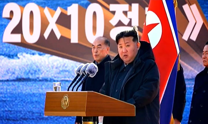 [서울=뉴시스] 김정은 북한 국무위원장이 지난 14일 함경남도 낙원군 바닷가 양식장 착공식에 참석했다고 조선중앙TV가 15일 보도했다. (사진= 조선중앙TV 캡처) 2025.02.16.