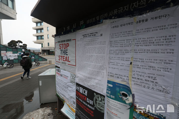 윤 대통령 탄핵 찬반 대자보 걸린 서울대 게시판