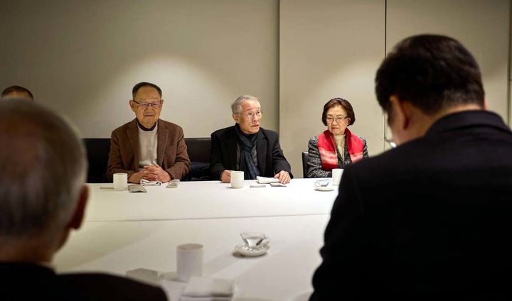 [서울=뉴시스] 조성봉 기자= 이재명 더불어민주당 대표가 17일 서울 시내 모처에서 함세웅 신부, 백낙청 교수, 김상근 목사, 이부영 자유언론실천재단 명예이사장 등 시민사회 원로 약 10여 명과 오찬을 하고 현 정국에 대한 조언을 청취하고 있다.(사진=더불어민주당 제공) 2025.02.17. [email protected]