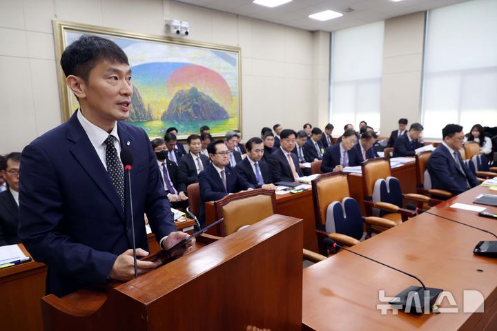 [서울=뉴시스] 조성봉 기자= 이복현 금융감독원장이 18일 오전 서울 여의도 국회에서 열린 정무위원회 전체회의에서 업무보고를 하고 있다.  2025.02.18. [email protected]