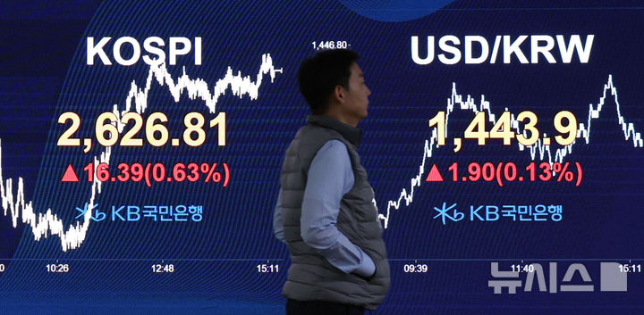 코스피가 전 거래일보다 16.39포인트(0.63%) 오른 2626.81에 마감했다. 코스닥 지수는 전 거래일보다 5.17포인트(0.67%) 상승한 773.65, 원·달러 환율은 전 거래일보다 2.0원 오른 1443.7원에 마감했다. 2025.02.18. [email protected]