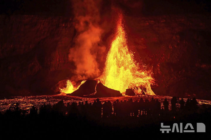[하와이 화산국립공원(미 하와이주)=AP/뉴시스]미 하와이주 빅 아일랜드의 하와이 화산국립공원에서 지난 3일 킬라우에아 화산이 폭발, 거대한 용암이 공중으로 치솟는 장면이 목격되고 있다. 미 하와이주의 킬라우에아 화산이 19일(현지시각) 하와이 빅 아일랜드에서 다시 용암을 분출하기 시작했다. 이는 12월23일 이후 10번째 폭발이다. 2025.02.20.