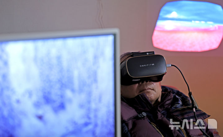 [대구=뉴시스] 이무열 기자 = 20일 대구 달성군 달성주민건강증진센터 정신건강디지털치료실에서 한 시민이 VR(가상현실)을 이용해 우울증과 불안 등을 해소하는 심리치료를 받고 있다.