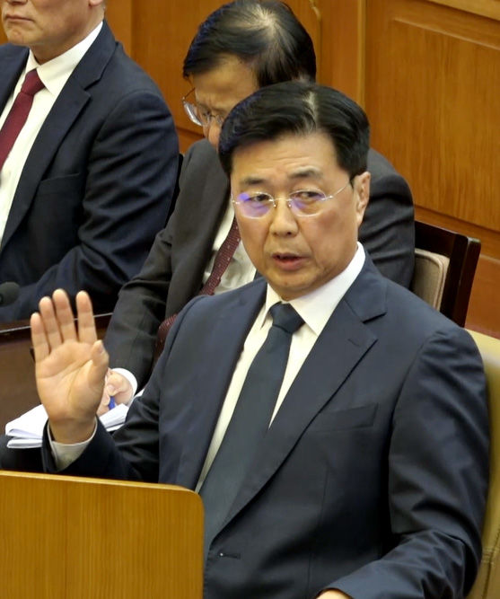 [서울=뉴시스] 김진아 기자 = 홍장원 전 국가정보원 제1차장이 20일 서울 종로구 헌법재판소에서 열린 윤석열 대통령 탄핵 심판 10차 변론에 증인으로 출석해 발언하고 있다. (사진=헌법재판소) 2025.02.20. [email protected] *재판매 및 DB 금지