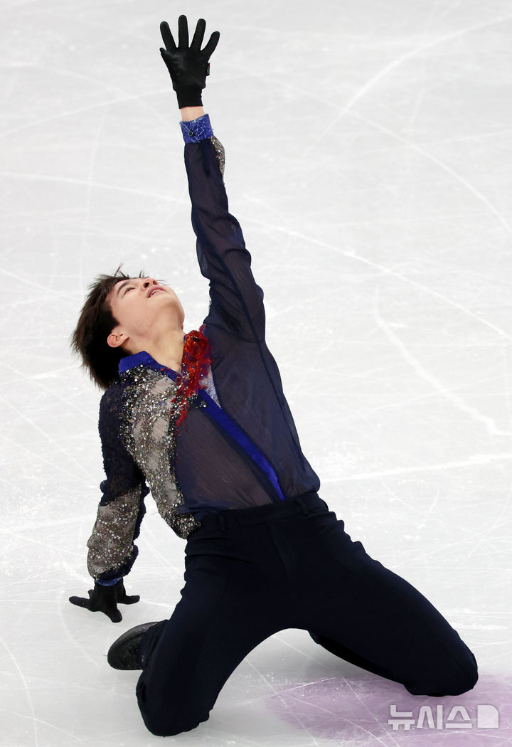 [서울=뉴시스] 이영환 기자 = 한국 김현겸이 20일 오후 서울 양천구 목동아이스링크에서 열린 2025 국제빙상연맹(ISU) 4대륙 피겨스케이팅 선수권대회 남자 싱글 쇼트 프로그램에 출전해 연기를 선보이고 있다. 2025.02.20. [email protected]