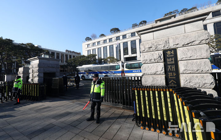 [서울=뉴시스] 홍효식 기자 = 헌법재판소가 오는 25일 윤석열 대통령 탄핵심판 변론을 종결하기로 했다. 약 2주에 걸친 평의를 거쳐 다음 달 초중순이면 선고가 이뤄질 것으로 보인다. 사진은 21일 서울 종로구 헌법재판소. 2025.02.21. [email protected]