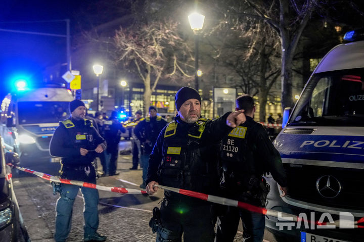 [베를린=AP/뉴시스] 21일(현지 시간) 독일 베를린의 홀로코스트 기념관 인근에서 흉기난동이 발생해 경찰이 현장을 통제하고 있다. 현지 경찰은 스페인 관광객 1명이 흉기 공격을 받아 부상했으며 용의자를 붙잡아 범행 동기와 사용 흉기 등을 조사하고 있다고 밝혔다. 2025.02.22.