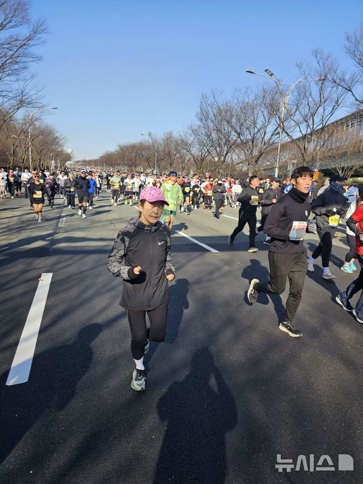 [서울=뉴시스] 안철수 국민의힘 의원의 배우자인 김미경 서울대 의대 교수가 23일 대구마라톤에 참가해 하프코스(21㎞)를 2시간38분 만에 완주했다. 김미경 교수도 안철수 의원과 같은 마라톤 애호가다. 김미경 교수는 마라톤 완주와 관련해 "대구는 코로나 확산 당시 뜻깊은 봉사를 했던 곳으로, 시민들께서 우리 부부에게 각별한 애정과 사랑을 보내주신 고마운 도시"라며 "대구는 대한민국 보수의 상징이자 2·28 민주운동, 국채보상운동, 코로나 극복 등 어떤 국난도 시민들이 하나 돼 이겨낸 위대한 도시"라고 밝혔다. 이어 "오늘 대구마라톤을 달리며 대구 코로나 의료봉사의 의미를 되새겼다"고 했다. 2025.02.23 (사진 = 안철수 의원실 제공) [email protected]