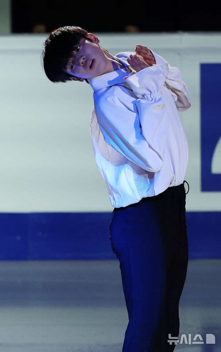 [서울=뉴시스] 고범준 기자 = 한국 차준환이 23일 오후 서울 양천구 목동 아이스링크에서 열린 2025 ISU 4대륙 피겨 선수권대회 갈라쇼에서 화려한 무대를 선보이고 있다. 2025.02.23. [email protected]