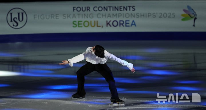[서울=뉴시스] 고범준 기자 = 한국 차준환이 23일 오후 서울 양천구 목동 아이스링크에서 열린 2025 ISU 4대륙 피겨 선수권대회 갈라쇼에서 화려한 무대를 선보이고 있다. 2025.02.23. [email protected]
