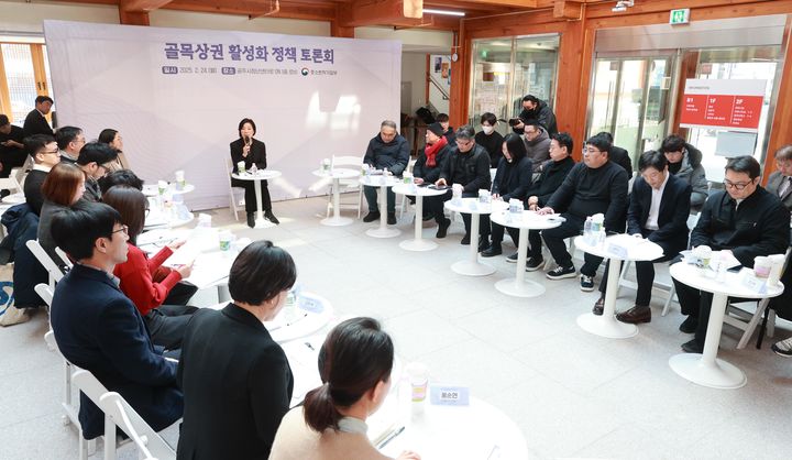 [서울=뉴시스] 오영주 중소벤처기업부 장관이 24일 충남 공주에서 열린 '골목상권 활성화 정책토론회'에서 인사말을 하고 있다. (사진=중소벤처기업부 제공) 2025.02.24. [email protected] *재판매 및 DB 금지
