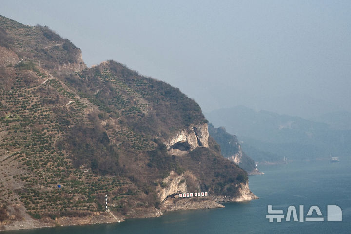 [이창=AP/뉴시스] 중국 후베이성 이창에서 지난달 20일(현지 시간) 촬영된 사진에 중국 인터넷에서 화제가 된 '강아지 산'의 강아지 모습이 선명히 보이고 있다. 지난 14일, 이 사진을 공개한 디자이너 궈칭산은 고향 이창을 방문해 하이킹 중 사진을 찍었고 이후 양쯔강 옆 강아지 형상의 산을 발견하고 사진을 소셜미디어에 올려 화제가 됐다. 강아지 주인들은 자신의 반려견 사진을 올리며 누구의 강아지가 이 산과 더 비슷한지 비교하기 시작했고 강아지와 함께 이곳을 찾아가 함께 사진을 찍기도 하는 것으로 알려졌다. 2025.02.25.
