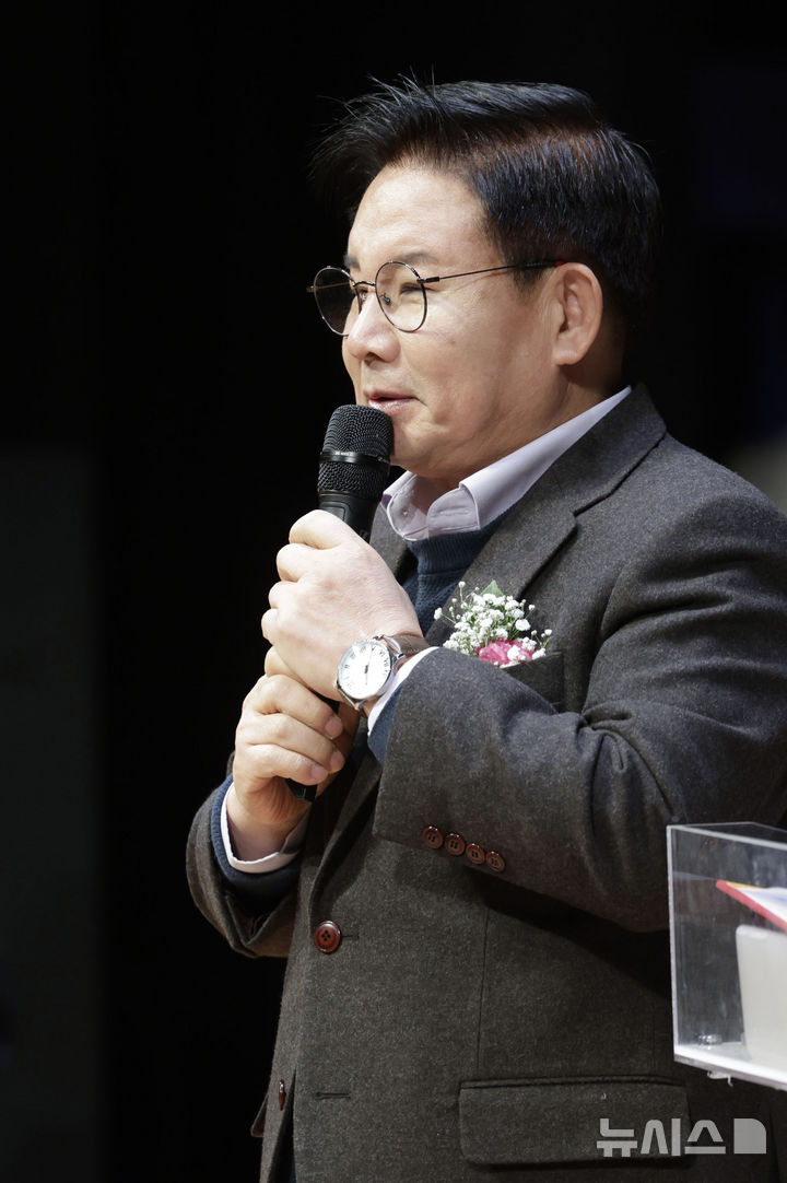 [서울=뉴시스] 최동준 기자 = 박강수 마포구청장이 25일 서울 마포아트센터에서 열린 일성여자중고등학교 졸업식에서 축사를 하고 있다. 2025.02.25. [email protected]