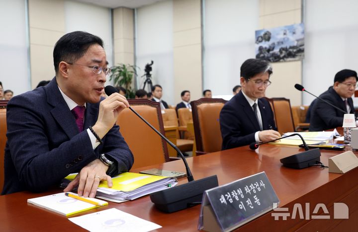 [서울=뉴시스] 조성봉 기자= 이진동 대검찰청 차장검사가 25일 오후 서울 여의도 국회에서 열린 윤석열 정부의 비상계엄 선포를 통한 내란혐의 진상규명 국정조사 특별위원회 전체회의 청문회에서 의원의 질의에 답변하고 있다. 2025.02.25. [email protected]