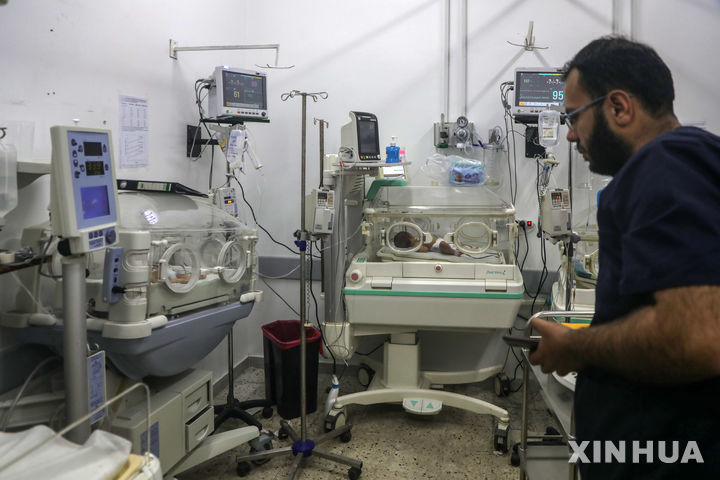 [가자시티=신화/뉴시스] 25일(현지 시간) 가자지구 가자시티의 한 병원 중환자실 인큐베이터에서 영아들이 치료받고 있다. 팔레스타인 의료 소식통에 따르면 가자지구에 지속된 한파로 영아 사망자 수가 6명으로 늘어났다. 2025.02.26.