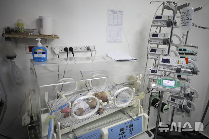 [가자시티=AP/뉴시스] 25일(현지 시간) 가자지구 가자시티의 한 병원 중환자실 인큐베이터에서 생후 두 달 된 영아가 치료받고 있다. 이 아이는 추위 여파로 열흘째 치료 중인 것으로 알려졌다. 팔레스타인 의료 소식통에 따르면 가자지구에 지속된 한파로 영아 사망자 수가 6명으로 늘어났다. 2025.02.26.