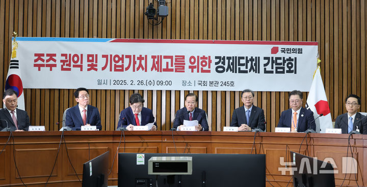 [서울=뉴시스] 고승민 기자 = 권영세 국민의힘 비상대책위원장이 26일 서울 여의도 국회에서 열린 주주 권익 및 기업가치 제고를 위한 경제단체 간담회에서 발언하고 있다. 2025.02.26. [email protected]