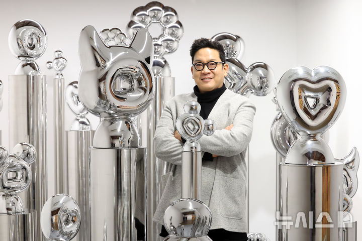[서울=뉴시스] 박진희 기자 = 김재용 작가가 26일 서울 종로구 학고재 본관에서 개인전 '런 도넛 런 Run Donut Run' 기자간담회를 갖고 도넛 모양의 다양한 도자 위에 다채로운 스프링클을 얹는 작품을 선보이고 있다. 2025.02.26. [email protected]