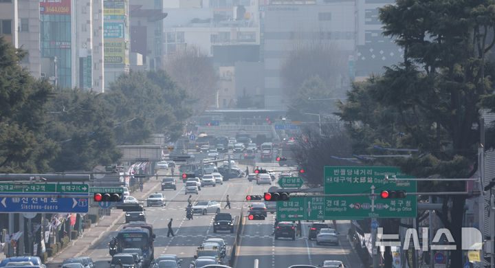 [대구=뉴시스] 이무열 기자 = 대구지역 초미세먼지 농도가 ‘나쁨’ 수준을 보인 26일 대구 북구 산격동에서 바라본 도심이 뿌옇게 보이고 있다. 2025.02.26. [email protected]
