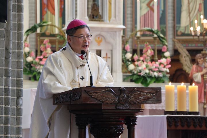 [서울=뉴시스] 황준선 기자 = 한국외방선교회 총재인 정순택 대주교가 26일 서울 중구 명동대성당에서 열린 한국외방선교회 설립 50주년 기념 미사에서 강론을 하고 있다. (사진=천주교 서울대교구 제공) 2025.02.26. [email protected] *재판매 및 DB 금지