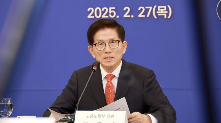 [서울=뉴시스] 김문수 고용노동부 장관이 27일 오후 서울 중구 로얄호텔서울에서 열린 2025년 제1차 고용정책심의회에 참석해 발언하고 있다. (사진=고용노동부 제공) 2025.02.27. [email protected] *재판매 및 DB 금지
