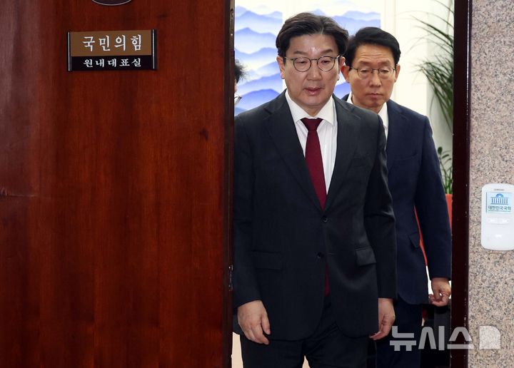 [서울=뉴시스] 조성봉 기자= 권성동 국민의힘 원내대표가 28일 오후 서울 여의도 국회에서 '더불어민주당의 국정협의회 참석 보류' 관련 입장 발표를 하기 위해 밖으로 나서고 있다..2025.02.28. [email protected]